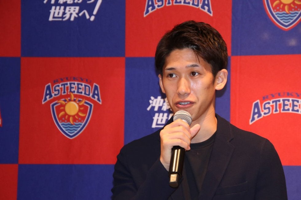 エンポリオ アルマーニのスーツに身を包み、会見場に登場した吉村は「チームの一員として勝利に貢献できるように頑張っていきたい。沖縄を盛り上げていけたらなと思っています」と意気込みを語った。