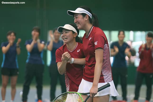 ――石川選手は清水(映里、スポ3=埼玉・山村学園)選手と組んでダブルス1に出場なさいました