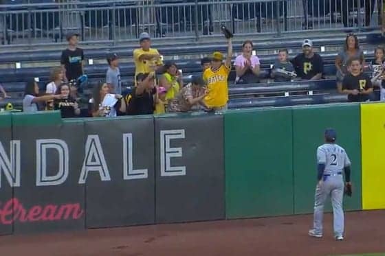 パイレーツは5点を追う3回。スターリングズが左翼へ3号ソロを放ち反撃に出た。左翼への大飛球にブルワーズのグリシャムはフェンス際で大ジャンプしたがスタンドに陣取ったパイレーツファンの少年がそれを“強奪”。直後に少年たちはグリシャムに向け人差し指を左右に振り「あともう少しだったね」と言わんばかりにあざ笑う行動を取った。