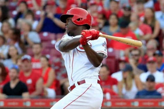 レッズの新人アキーノが3回に今季最速の打球速度190キロの弾丸2ランを放つ