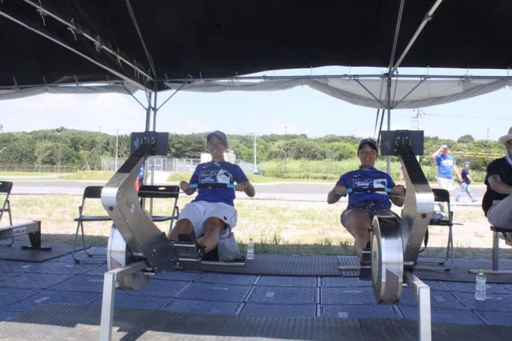 また会場内には様々なブースが設けられており、中には漕艇競技で選手たちのトレーニングの一貫として使用されている「ローイングエルゴメーター」を体験することができる。