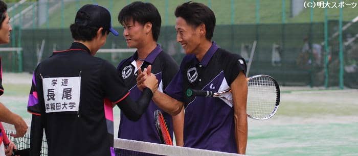 頂点へはあと少しだった。中平慎吾(農4=尽誠学園)・米澤要(営4=能登)ペアにとって泣いても笑っても最後となったダブル…