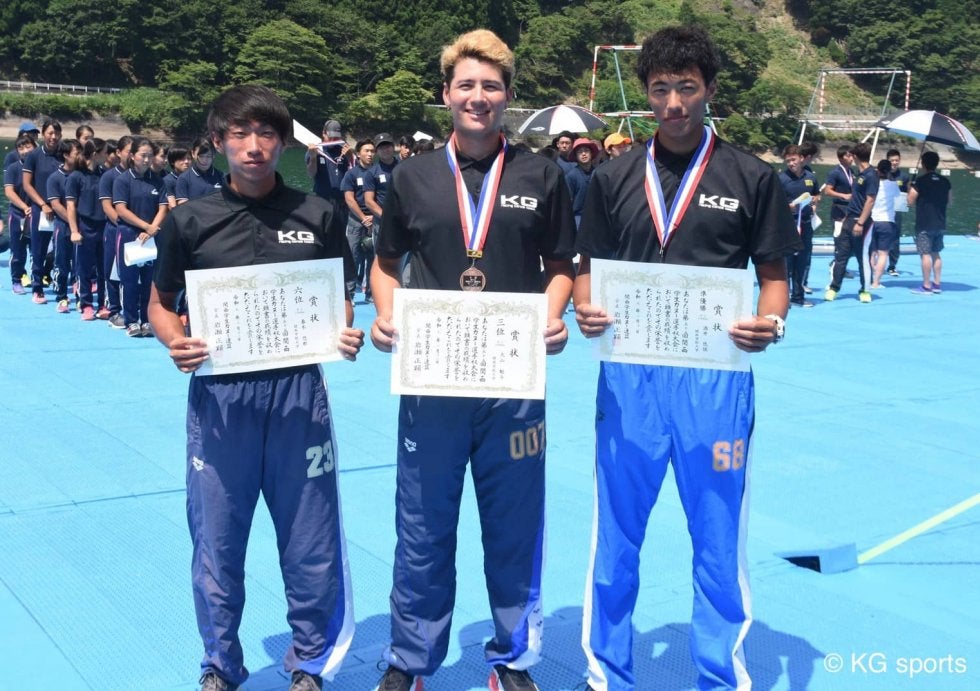 <写真・{K-1}1000メートルの入賞者たち> 8月11日、兵庫県宍粟市音水湖カヌー競技場にて第55回関西学生カヌー選…
