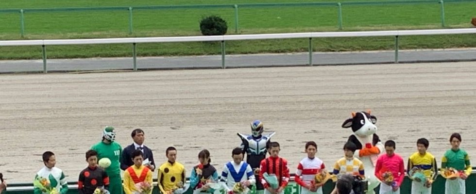 8月12日、盛岡競馬場で行われるヤングジョッキーズシリーズ、トライアルラウンド盛岡のセレモニーがウィナーズサークルで行われ、藤田菜七子騎手ら12名の若手ジョッキーが参加した。