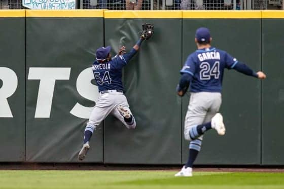 レイズのギレルモ・エレディア外野手が11日(日本時間12日)、敵地でのマリナーズ戦でスーパープレーを見せた。7回1死でオースティン・ノラが放った右中間の大飛球を、フェンス際でランニングキャッチ。そのままフェンスに正面からぶつかったが、ボールを離さなかった。