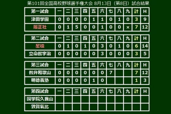 第101回全国高校野球選手権大会第8日が13日、甲子園球場で行われ、第3試合は智弁和歌山(和歌山)と明徳義塾(高知)が対戦。智弁和歌山は、7回に大会タイ記録となる1イニング3本塁打を放つ猛打で逆転に成功した。