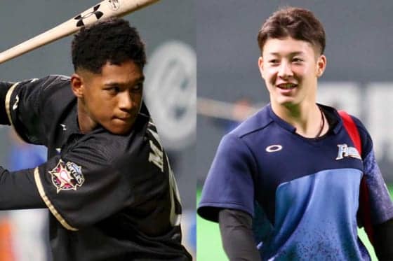 日本ハム・万波中正(左)、吉田輝星【写真:石川加奈子】