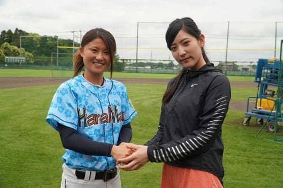 野球女子モデル・椿梨央が企業チームでマドンナジャパン主将・ハナマウイの出口彩香をインタビュー