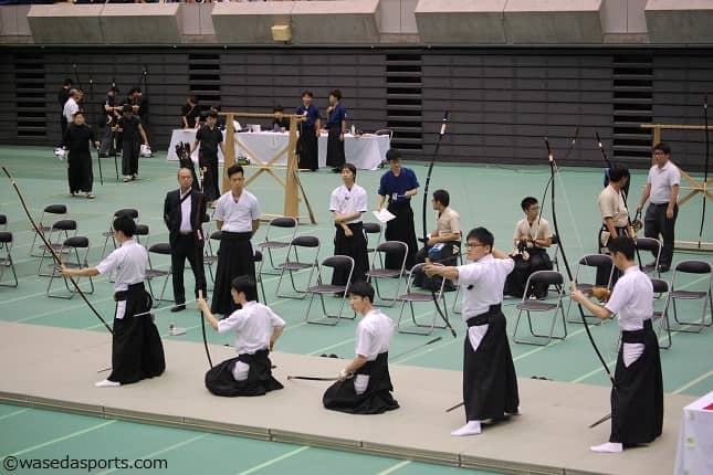 台風接近に伴う混乱を回避するため、今年のインカレは日程が変更された。14日に男子団体の予選から決勝までをすべて行い、15日は競技が中止に。そして最終日である16日に女子団体の予選と決勝が行われる。この日程変更の結果個人戦は中止が決まり、全国制覇は団体戦に託された。また、競技時間の短縮のため決勝進出ラインの引き上げが行われ、予選通過校数が24校から16校となった。例年以上に過酷な予選となった今大会。男子団体は千葉智弘(先理2=東京・早大学院)が皆中を出すなどの活躍を見せて15中を記録し、決勝トーナメント進出を決めた。