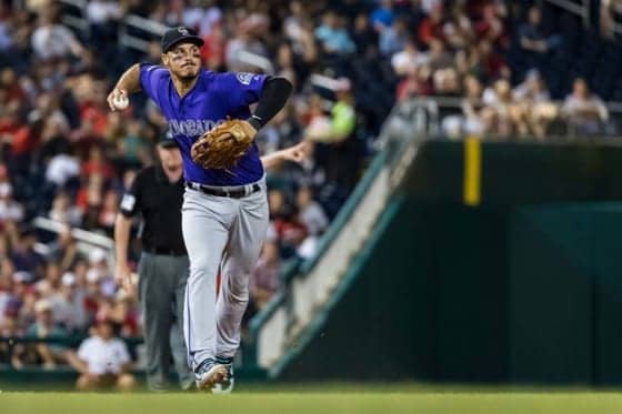 ロッキーズのノーラン・アレナド内野手が、またも美守で見せた。17日の本拠地マーリンズ戦の9回1死一塁の守備。シフトを敷いて守っていた遊撃付近からボテボテの打球に猛チャージ。利き手の右手でキャッチし、そのまま一塁へ弾丸送球した。