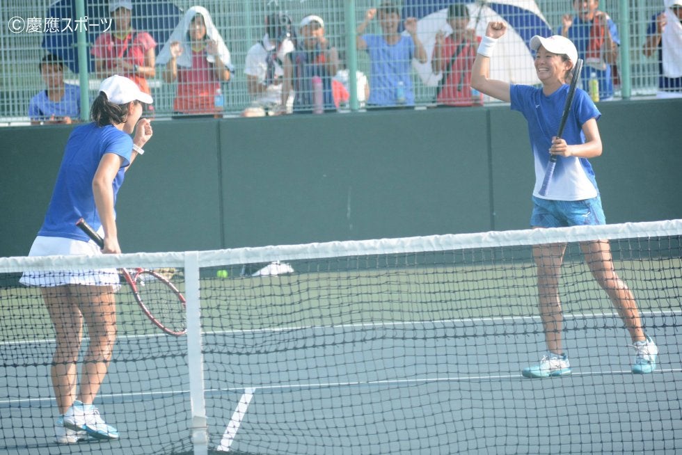 単複のベスト4が出そろった。シングルス準々決勝に出場した佐藤南帆(環1・日出)はこの日も危なげない試合運びで勝利し、堂々の4強入りとなった。ダブルスでは3回戦で城間安実(総4・九州文化学園)・向井マリア(環4・城南学園)組との同士討ちを制した大村千乃(総3・九州文化学園)・望月菜々子(環3・白鵬女子)組が、準々決勝でも第1シードダブルスを破る見事な下克上を果たし、準決勝進出を決めた。また、佐藤・永田杏里(総1・南山)組も順当に勝ち上がり、慶大からは2組のダブルスがベスト4入りを果たした。