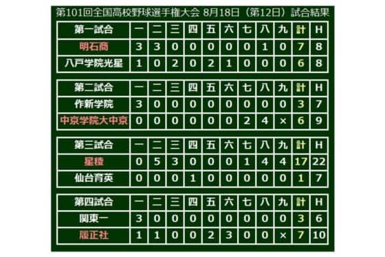 第101回全国高等学校野球選手権、第12日の結果一覧