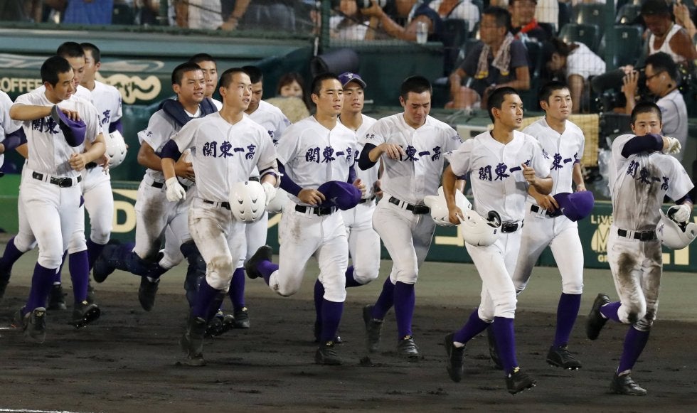 【写真提供:共同通信社】履正社-関東第一 ベスト4進出を逃し、応援席へあいさつに向かう関東第一ナイン=甲子園