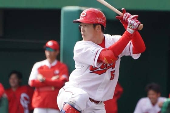 第1打席で左前打、第2打席は8試合ぶりのタイムリーとなる左前適時打広島 – ヤクルト(20日・マツダスタジア…