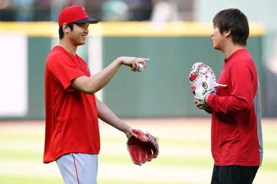 球団公式ツイッターがキャッチボール動画を公開 エンゼルスの大谷翔平投手が20日(日本時間21日)、敵地で行われたレンジャ…
