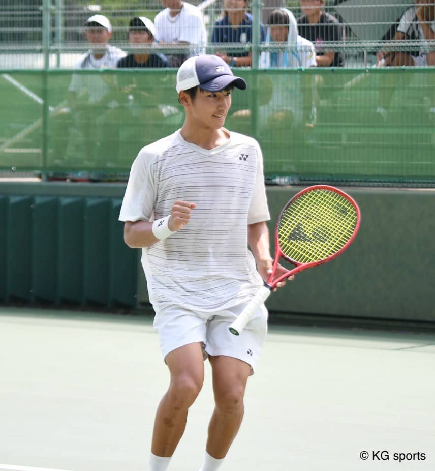 <写真・シングルス16強となった中澤> 8月24日、大阪府靱テニスセンターにて2019年度関西学生テニス選手権大会(…