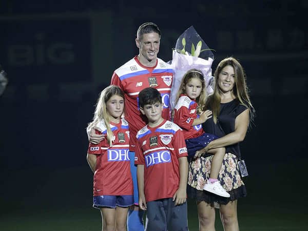 引退セレモニーで家族とともに写真撮影に応じるフェルナンド・トーレス
