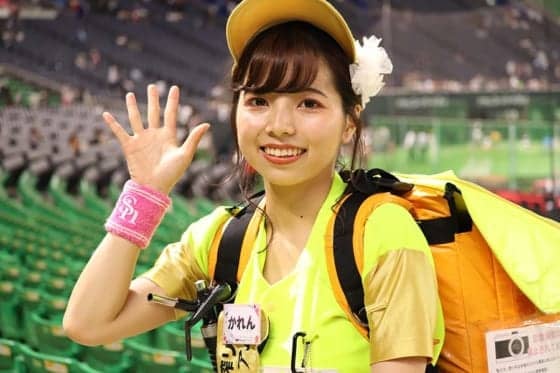 鹿児島県出身の「かれん」さんは一塁側内野を主な持ち場にする スタジアムでの野球観戦、そのお供として楽しみにしている人が多…