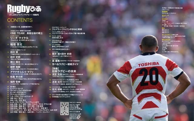 稲垣啓太選手が日本の現状とW杯への展望、プロップの魅力、ラグビー人生について語る「稲垣啓太選手 SPECIAL INTERVIEW」、前回大会で日本代表のコーチング・コーディネーターとして相手国の分析も行った沢木敬介氏によるライバル攻略法「POOLA 対戦国分析」なども掲載。