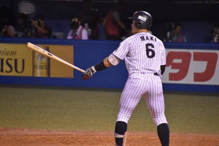 試合は一進一退の攻防が続いた。6回には1点を追う大学日本代表が、U18代表3番手・西(創志学園)から4番・牧(中大)が先頭ソロ本塁打をレフトスタンドに叩き込み同点。今春の東都大学野球リーグ首位打者は、ここでも勝負強さを見せつけた。