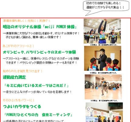 明治は、スポーツの楽しさ×食の大切さを体験できるイベント「meiji Tokyo 2020 Fes」第11弾を10月20日(日)に東京都板橋区にて開催する。