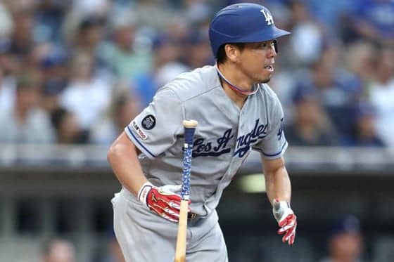 敵地パドレス戦で適時打を放ったドジャース・前田健太【写真:Getty Images】