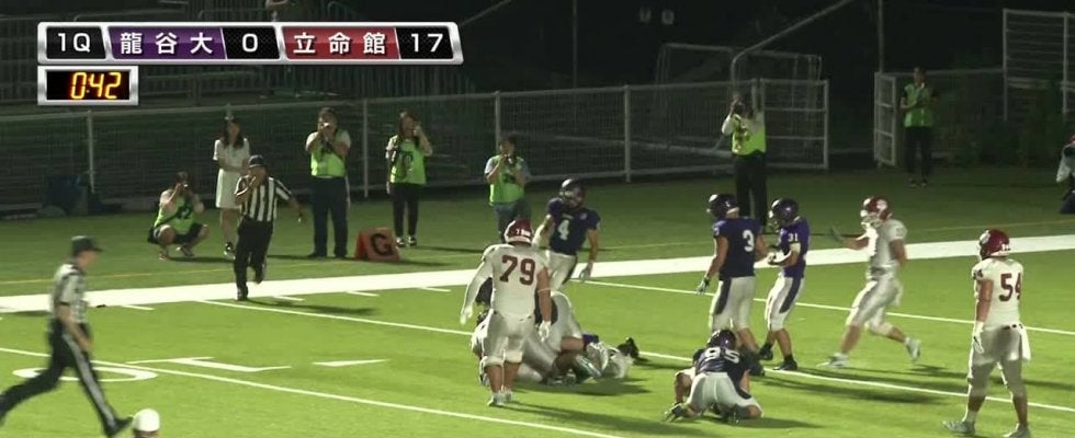一方の龍谷大は、前半は失った流れを取り戻すことができなかった。細かく前へ進むもののファーストダウンが取れない展開が続く。