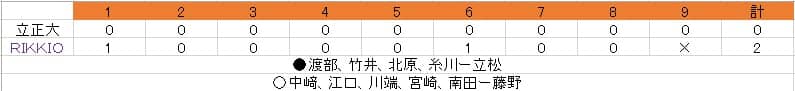 初回、金川の安打、盗塁によりチャンスが訪れる。春リーグ戦では.375と、立大ではトップの打率を誇る山田が次打者だ。打球は左翼に伸び、二塁の金川が本塁を踏んだ。この二塁打により、立大は先制点を獲得することとなった。6回で金川は、右翼方向の頭上を越える長打により、三塁に出塁。一死一、三塁のチャンスを6番打者の小野大は見逃さなかった。打席に立った小野大は、犠打の姿勢で迎え撃つ。打球は遊撃手の手前に落ち、その間に三塁走者は生還した。おしくも小野大はアウトになったものの、追加点獲得に貢献した。