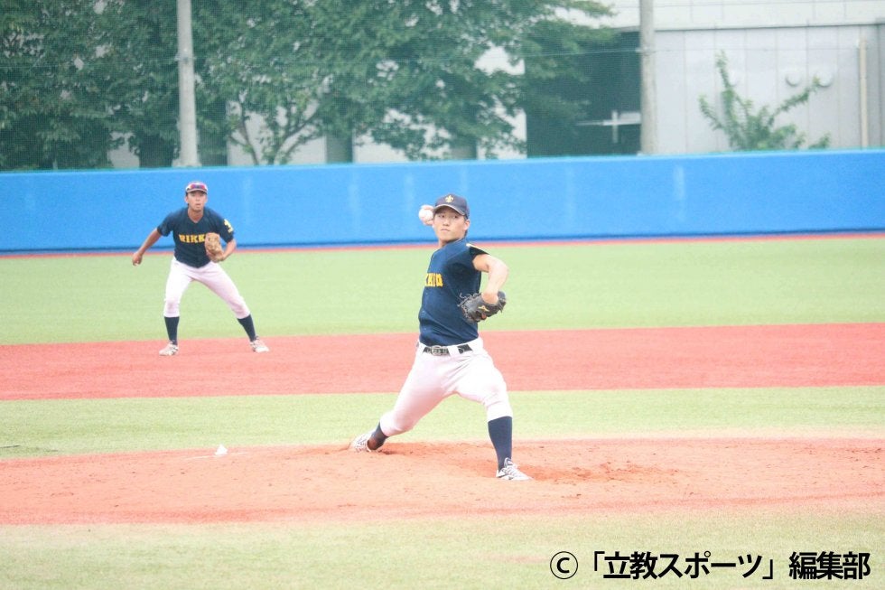 ◆2019年度夏季オープン戦◆8月29日 対立正大 立大新座キャンパス粘りの投球を見せた宮崎晃(コ4=県相模原)初回、満…