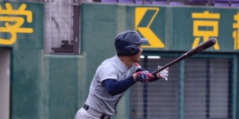 <写真・適時打を放った前原> 8月31日、わかさスタジアム京都にて令和元年度関西学生野球連盟秋季リーグ戦第1節(対近大1…
