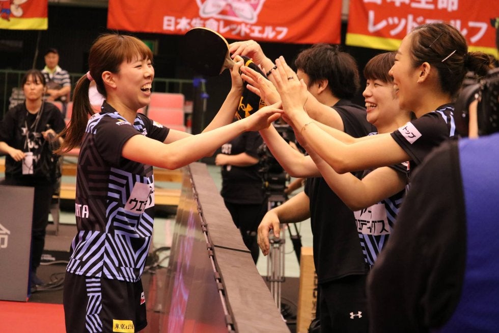 1日、日本生命レッドエルフ(以下、日本生命)とトップおとめピンポンズ名古屋(以下、TOP名古屋)のTリーグ・2ndシーズン初対決は、3-2でTOP名古屋に軍配が上がった。TOP名古屋は今季初白星となり、勝ち点3を獲得。一方初代女王の日本生命は、開幕3連戦を1勝2敗と苦しい立ち上がりとなっている。