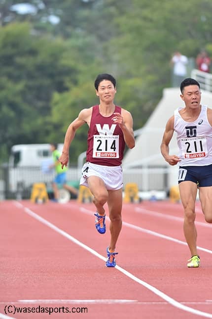 男子400メートルに出場した小久保友裕(スポ3=愛知・桜丘)と伊東利来也(スポ3=千葉・成田)。組こそ違えど、ともにゴール後には納得いかない表情を浮かべた。1組目に登場した小久保は45秒台の大台を視野に入れてスタート。前半から実業団の選手に引けを取らない速さで突っ込んだが、自身の感覚と実際の走りに誤差があり、スピードを緩めてしまったという。持ち味の後半でさらに追い上げを見せ、自己記録まで100分の4秒に迫る46秒58で組2着に食い込んだが、「無難にレースを終えたという感じ」(小久保)と今ひとつの一戦となってしまったようだ。