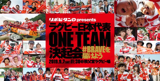 日本ラグビーフットボール協会は、ラグビー日本代表を“ONE TEAM”をテーマに送り出す「リポビタンD presents ラグビー日本代表ONE TEAM決起会 ~#BRAVEを届けよう~」を9月7日(土)に秩父宮ラグビー場で開催する。