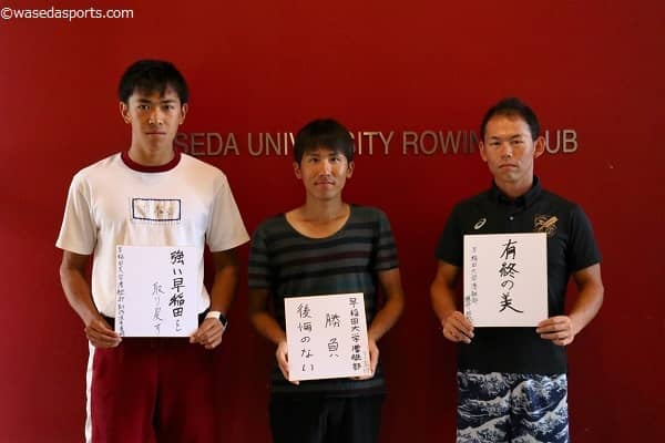 今回はエイトに乗る三人の4年生、藤井拓弥主将(社4=山梨・吉田)、坂本英皓副将(スポ4=静岡・浜松北)、徐銘辰チーフコ…