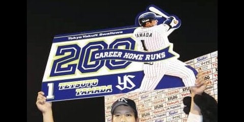 ヤクルト―広島22 通算200本塁打を達成し、記念のボードを掲げるヤクルト・山田哲=神宮【写真提供:共同通信社】■山田…