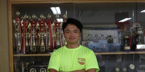 ◇魚躬鉄平選手(舵手なしペア)◇最後の大会を前に、自信に満ちた表情を見せる魚躬(コ4)ー残り約10日で最後の大会が始まる…
