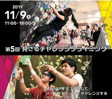 「見ざるチャレンジクライミング」は、アイマスクを必ず着用し、パートナーの声によるナビゲートによって指定されたホールド(石)のみを使って課題を登るクライミングコンペだ。 障がい、年齢、性別の制限がなく、ビギナーからエキスパートまで出場できる。