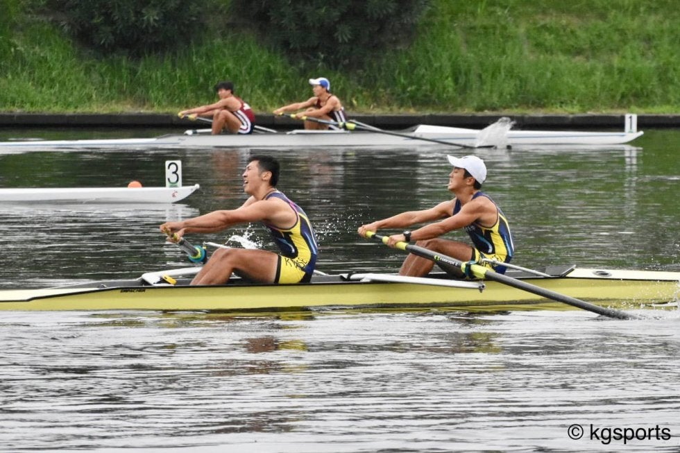 <写真・最後まで力強く漕ぎ切った男子舵手なしペア> 9月5日、埼玉県戸田市戸田ボートコースにて第46回全日本学生選手権が…