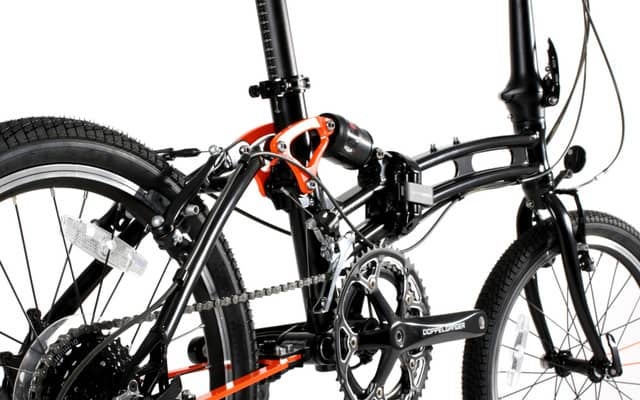コンパクトに折りたたむことができる構造を採用。クイックリリース機構により、初心者も工具不要で簡単に折りたためる。折りたたみ時のサイズは40×82×62cm。また、折りたたみ形状を維持するマグネットを採用することで、持ち運ぶ際の揺れで自転車が自然に展開してしまうことを防ぐ。