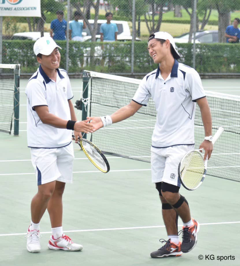 <写真・D1で接戦を繰り広げた栗山・天野(左)組> 9月5日、大阪府江坂テニスセンターにおいて、2019年度関西大学…