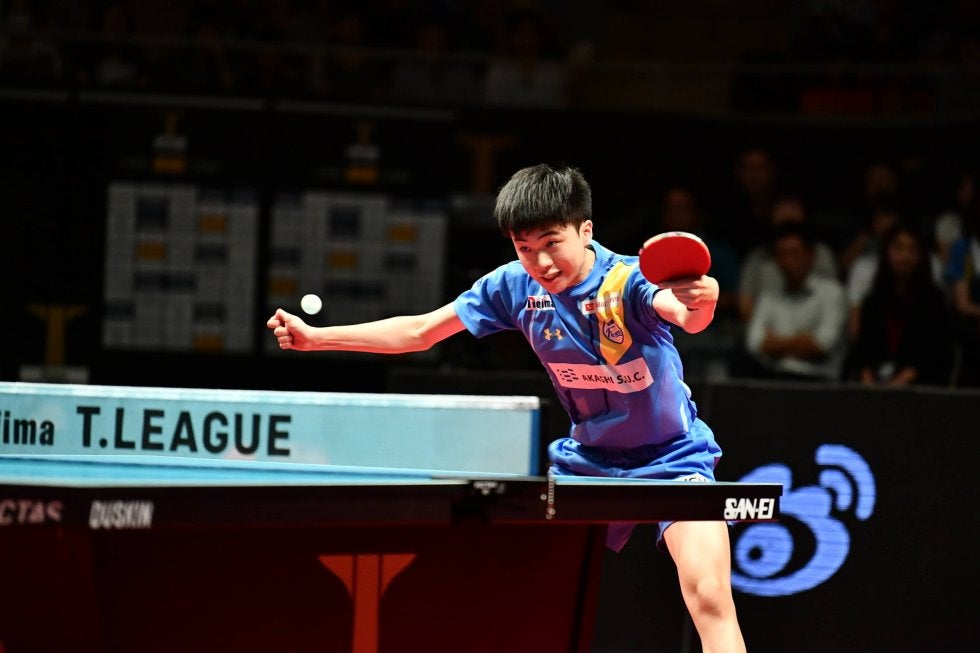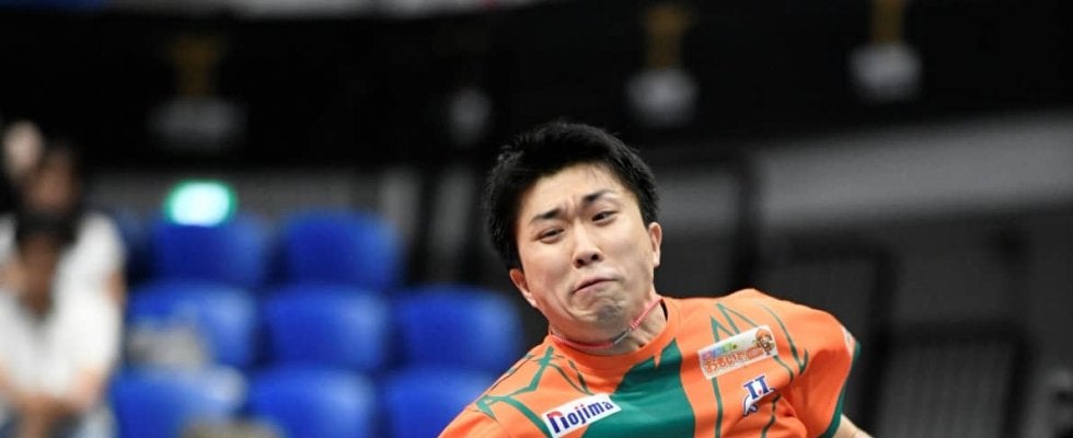写真:林昀儒(岡山リベッツ)に勝利した神巧也(T.T彩たま)/提供:©T.LEAGUE