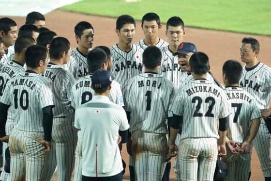 また、守備面ではパナマ戦に続いて武岡龍世内野手(八戸学院光星)が遊撃を守り、熊田任洋内野手は指名打者で出場。さらに、登録メンバーに本職が少ない外野は、遊撃手の森敬斗内野手(桐蔭学園)が“不動”の中堅手として出場したものの、左翼には宮城大弥(興南)、右翼には西純矢(創志学園)と、投手としてプロから注目を浴びる2人が入った。