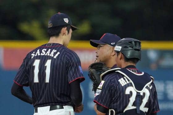 佐々木は初回に最速153キロをマーク、無失点スタートも永田監督がマウンドに向かい右手を確認日本 – 韓国(6…