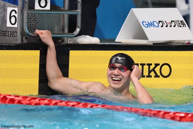 世界水泳があまり良くなかったので予選からちゃんと9秒頭くらいで泳いで、決勝はベストに近いところで泳ぎたい、大会は違いますがそこでリベンジしたいなという思いがありました。予選の2分9秒0はまあまあいいのかなと思いました。でも、(決勝は)優勝はできましたが、8秒0というタイムを見るともうちょっと出したかったなというのが正直なところです。