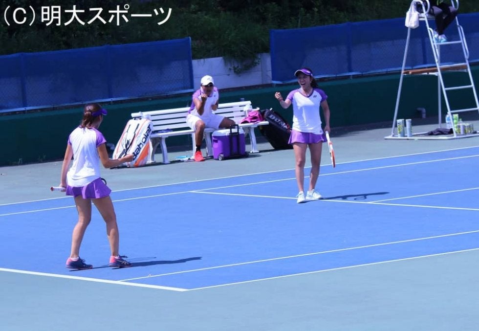 「いつも通り楽しくやっていたのですが、やはりリーグ戦なので一本取らなければという気持ちが個人戦に比べてあった分、お互い今までにないミスがありました。 でも、いつも通りお互いイライラすることもなく、終始声を出していけていたので、連携は良かったと思います」