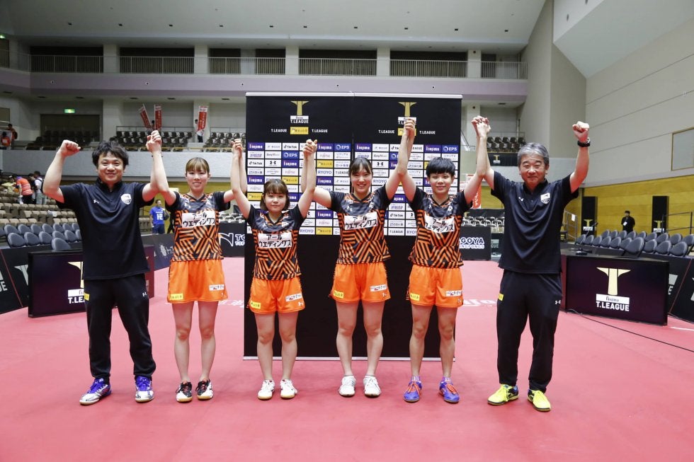 写真:勝利したトップおとめピンポンズ名古屋/提供:©T.LEAGUE