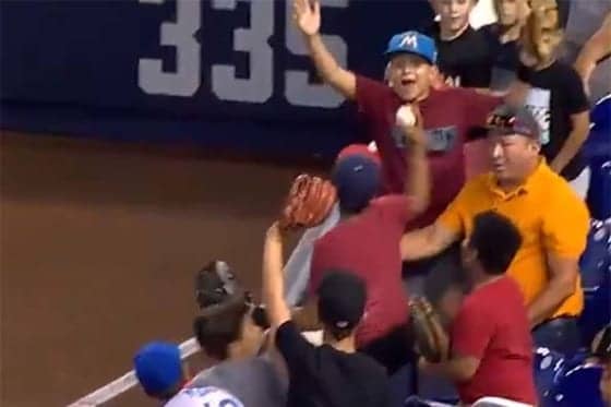 レフト線の内野最前列に座っていた少年、ライナーに手を伸ばし2度も好捕マーリンズ 9-0 ロイヤルズ(日本時間9日・マイア…