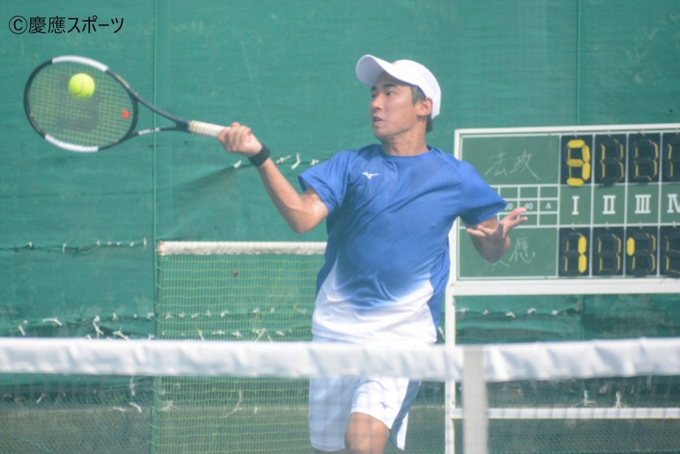 リーグ戦で2勝を上げている慶大は、同じく2勝を上げている法大と対戦。ダブルスを1勝2敗と負け越すも、S5福田真大(商4・…