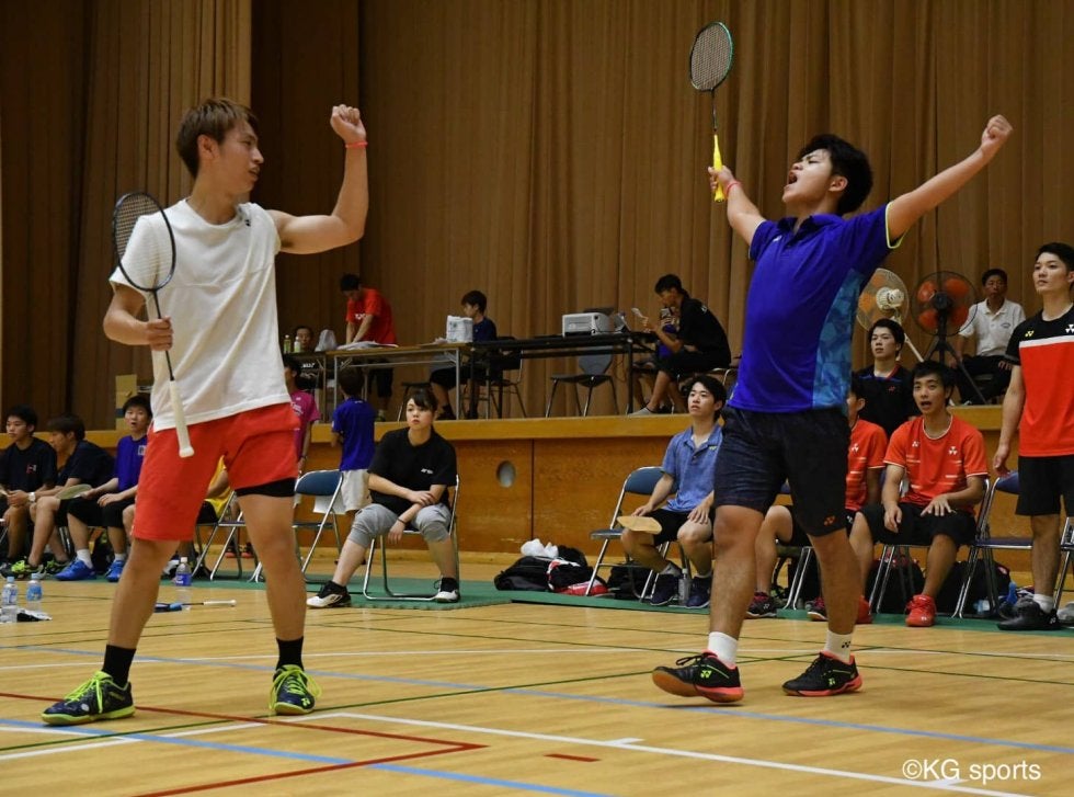 <写真・勝負をつなげた西原・川波ペア> 9月10日、関西大学体育館にて、平成31年度関西学生バドミントン秋季リーグ戦(対…
