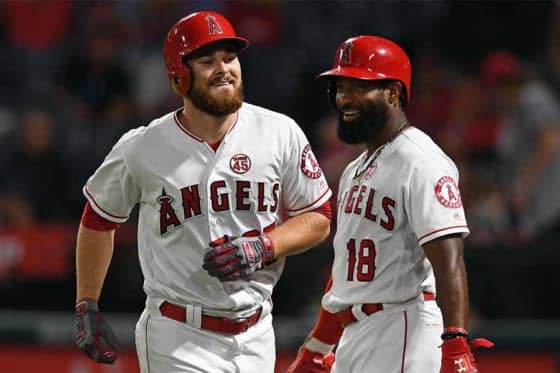 代打本塁打を放ったエンゼルスのジャレッド・ウォルシュ(左)【写真:Getty Images】